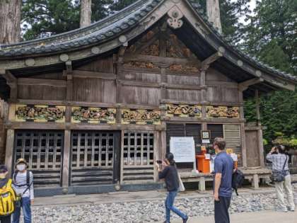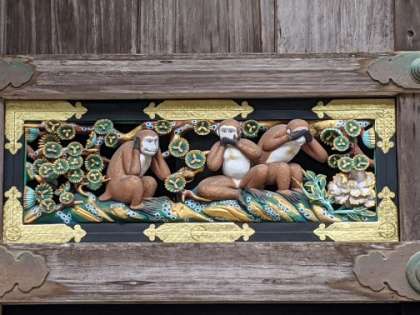 その向かいにあるのが神厩舎という馬小屋で、そこに彫られているのが、かの有名な「三猿」です。