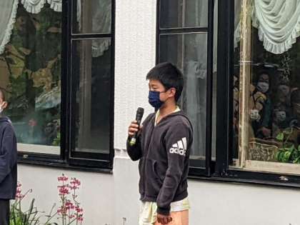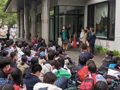 児童代表の言葉に続き、当宿舎の支配人さんからお話がありました。