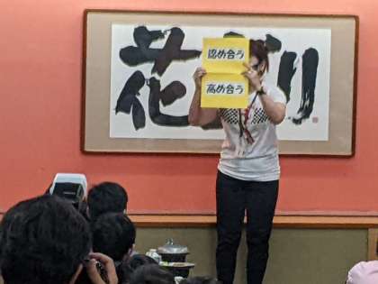 まずは、先生からのお話です。この移動教室でみんなに頑張ってほしいことをカードを使ってお話してくれました。(わざわざ、作ってくれたのですね!)