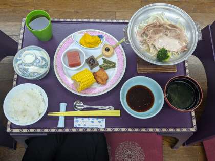 夕食の写真です。拡大して、よーく見ておいてくださいね。(恒例のクイズもあります)