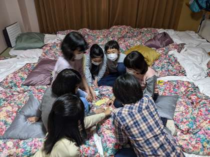 順番にお風呂に入るので、まずは、男子部屋と女子部屋を一部屋ずつ訪問しました。