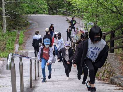 途中で休息しながら滝を見たり、写真を撮られたり、頑張って登っていきましょう。