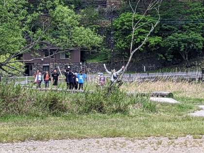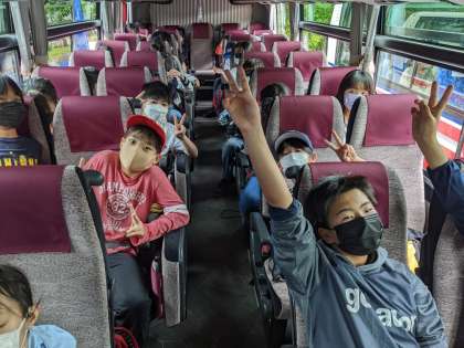 無事に?ハイキングを終えて、これからお昼ごはんと日光彫体験をする場所にバスで移動します。