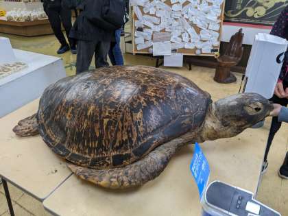 玄関入って真っ先に目に入ったのは、ウミガメの剥製です。日光動物シリーズにピッタリです。