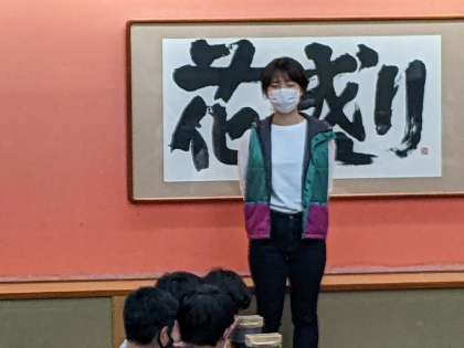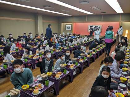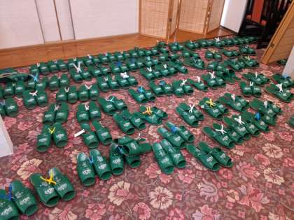 食事会場の外をふと見ると、子供たちのスリッパが整然と並べて置いてありました。