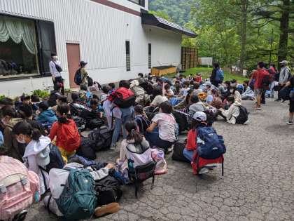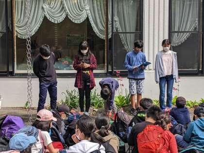 宿舎の方に感謝の言葉を述べて、みんなで声を揃えてお礼を言いました。