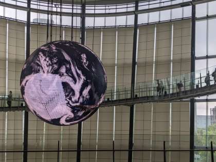 らせん階段がありますが、そのところに大きな地球の模型がありました。