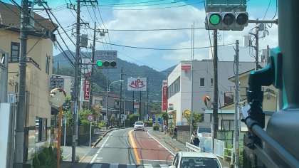 車窓からは、ふだん見慣れた名前のお店も見つけました。恩方店と書いてありました。
