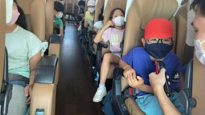 バス中では、楽しくお話をしながら和やかに過ごしています。