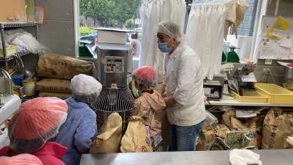 ファリーヌの店長さんが、どのようにしてパンを作っているのかを実際に工房に入れてくださり、見せてくださいました。また、子供たちの質問にも一つ一つ分かりやすくお話ししてくださり、そして、パンの歴史などパンについてのたくさんのこと教えてくださいました。聞いている私たち大人もとても勉強になりました。お店の方々もとても親切で優しく子供たちを迎え入れてくださいました。