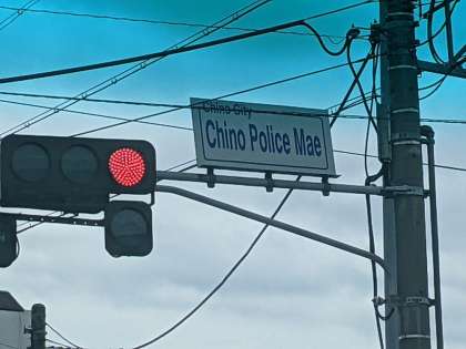 2枚めは普通の表示ですが、道の反対側には3枚めの写真を見て分かるとおり、オール・イングリッシュになっています。