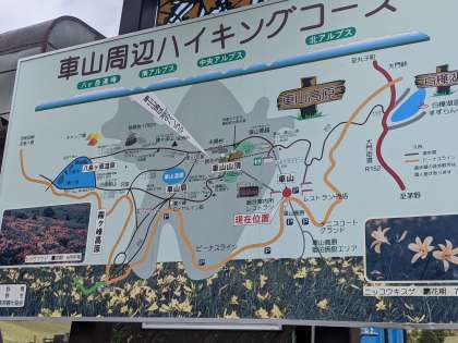 ハイキングコースの案内板がありましたが、私たちはまず、リフトに乗って車山の頂上に向かいます。