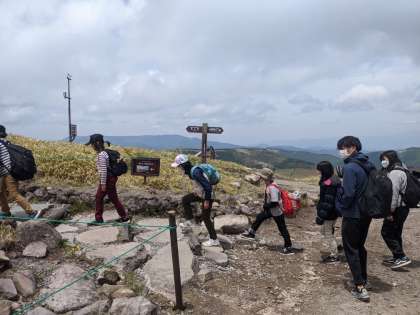 リフトを降りたところで、一度集合してから、みんなで山頂を目指します。
