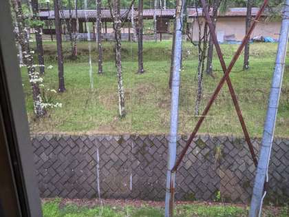 トイレの窓から外の写真を撮りましたが、雨の降っている様子が分かりますか?