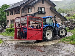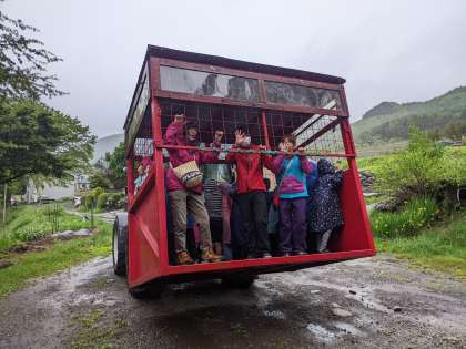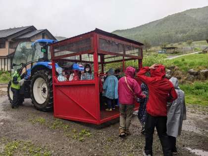 乗り込むと、まずは、荷台が上に上がります。子供たちの反応を見ると、テーマパークにある何かのアトラクションのような感じです。