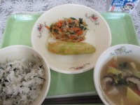 今日は、八王子でとれた新鮮なたまねぎがたくさん届きました!写真2枚目のように、とても大きく、立派な新たまねぎでした。薄くスライスし、じっくり炒めて、出汁で煮込み、たまねぎの甘みと旨味を引き出すように調理しました。ある教室では、入った瞬間に「スープのたまねぎがとてもおいしい!!」と言ってくれた子がいて、「わかってくれているな〜」ととても嬉しく思いました。地元の恵みに感謝して食べることができて、とてもよかったと思います。