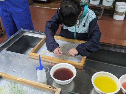 できあがったものはしばらく乾かして、和紙として安定したら、後日学校に送られてきます。
