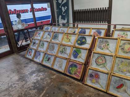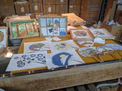 体験館内には、お手本のようなものも並べられています。うちわもありましたが、絵画のようなものもありました。