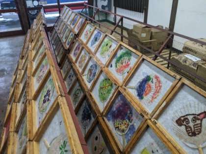 みんなが作ったものが枠ごときれいに並べられています。カラフルで、とてもきれいですね。