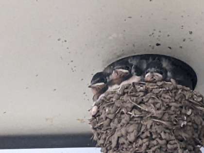なお、またツバメの巣があって、かわいいひなが顔を出していました。