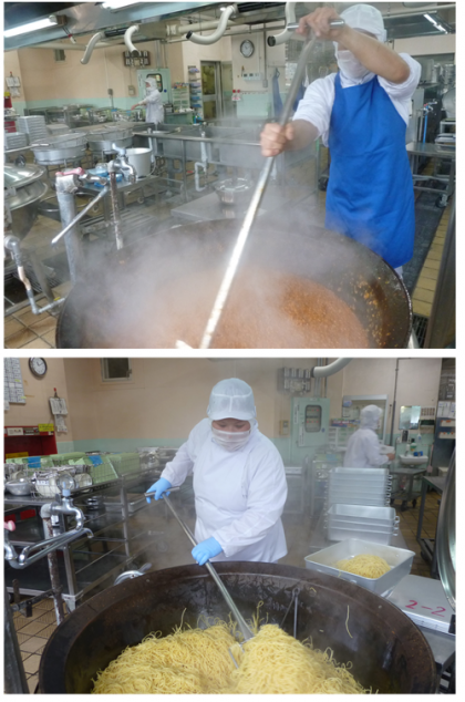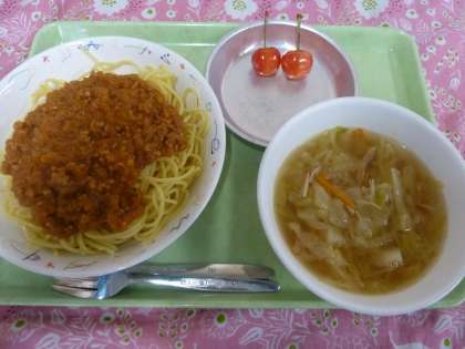 スパゲティミートソースは給食のメニューの中でも大人気を誇ります。1年生もさっそく大好きになってくれました。おかわりをたくさんしてくれて、見ているこちらもとても嬉しく思いました!ミートソースには玉ねぎをたくさん使っています。椚田小全員分で55Kgものたまねぎです。今の時期は新玉ねぎなので甘みが強くておいしいのですが、水分も多いので、煮詰めるのに時間がかかります。朝9時前から煮込み始めて、11時30分まで、調理員さんがつきっきりで煮込んだので、水っぽくなく、とてもおいしく仕上がりました。今日使った玉ねぎはスープの分も含めて全て八王子産です。