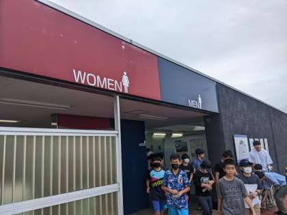 ここでは、同じくトイレ休憩に、他の学校も来ていました。中には、市内の小学校もあって、そこの校長先生とも挨拶を交わしました。