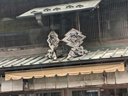 また、後ほど本物を見ますが、左甚五郎が彫った「眠り猫」の試作品と言われる彫刻が、店先の屋根の上にありました。