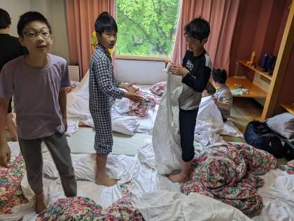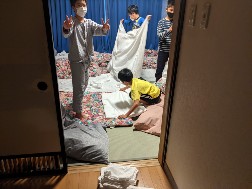 6時30分が起床時刻ですが、それより早く起きたようで、てきぱきと布団の片付けなどを進めています。