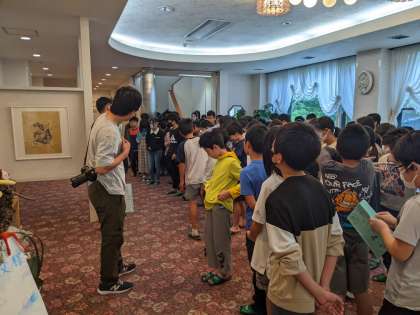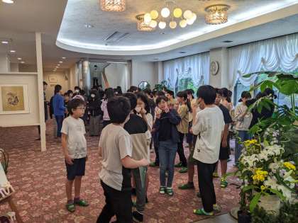 まだ完全に雨が上がっていないため、今朝はロビーで朝の会をします。