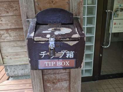 こちらのトイレでも、みんなを代表してチップを入れておきました。