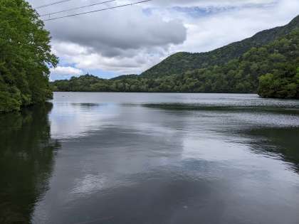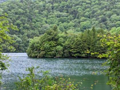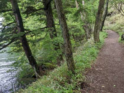 湯ノ湖畔はとても歩きやすい道でした。左に湯ノ湖を見ながら歩いています。