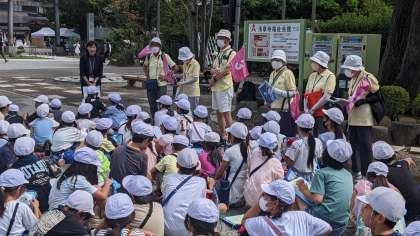 昨年の4年生の社会科見学でもお願いをしましたが、今年も、台東区観光ボランティアガイドのみなさんに、これから浅草寺を中心とした界隈の案内をしていただきます。
