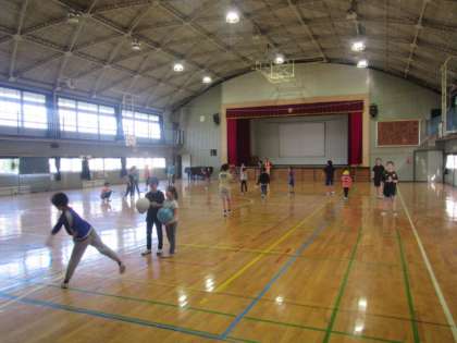 体育館を使って遊びました。(写真上)