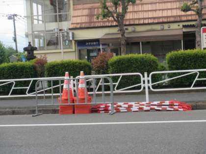 椚田遺跡公園通りは通行止めの準備がなされていました。(写真中)