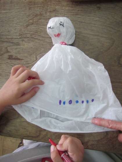 いつもお世話になっている6年生が日光移動教室に行くと聞いて「げんきで!」「おてんきだといいね!」ということで、てるてる坊主を図工の時間に作って(6月7日撮影)この日プレゼントしました。