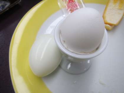 写真下:ゆで卵、食べていないのかと思いきや殻だけでした。