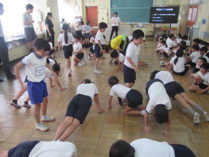 他の学年はトップアスリートの指導予定があるので、今回マット運動は3年生が選ばれました。