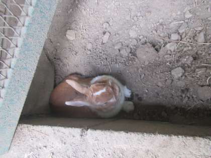 うさぎのココアは夏休み中は避暑のため西昇降口で生活していました。