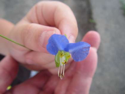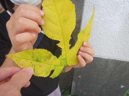 2年生が校庭での活動終わりに校長に観察した植物を見せてくれました。