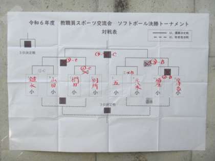 下:対戦表、この日はとても暑かったため急きょ熱中症予防として、敗者復活戦や3位決定戦は取りやめとなりました。
