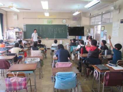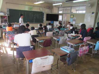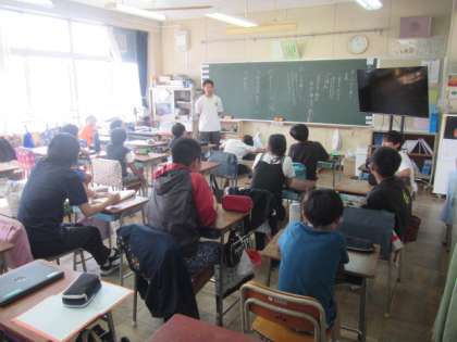 体育委員会は教室での話し合いの他、校庭に出て石拾いもしてくれました。