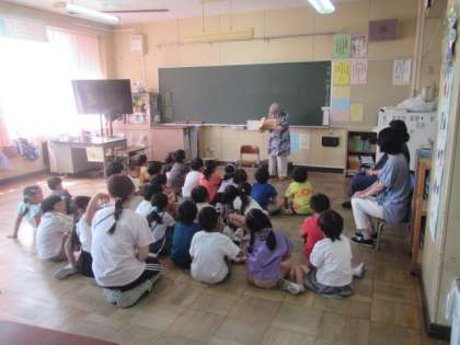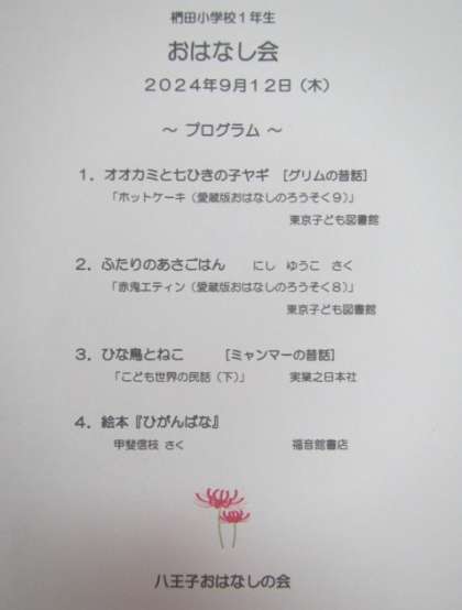 9月12日(木)八王子おはなしの会の皆さんが来校され、1年生に読み聞かせをしてくださいました。(写真1-2での様子)