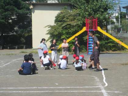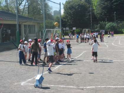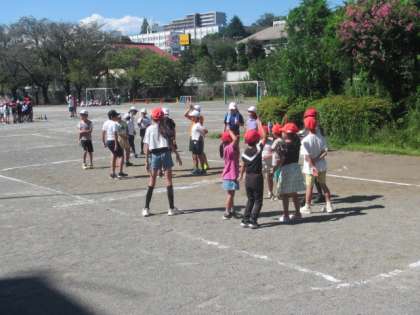 校庭ではドッジボールで楽しむ班が多かったようです。