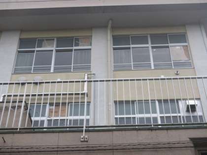 教育委員会の営繕課の方がガラスを入れ替えてくださいます。