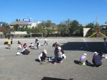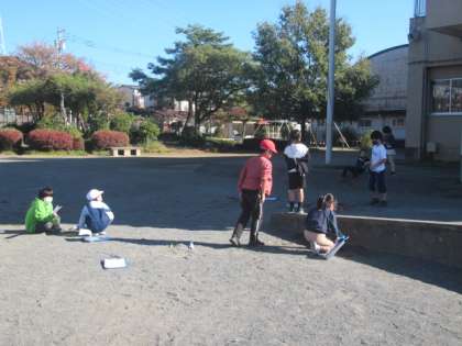 3年生が校庭で理科の観察(実験?)を行っていました。