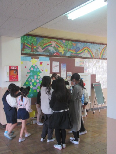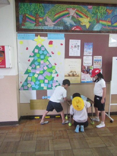 月曜日になかよし集会を開いてくれたなかよし委員会が今度は西昇降口にクリスマスツリーを作ってくれました。