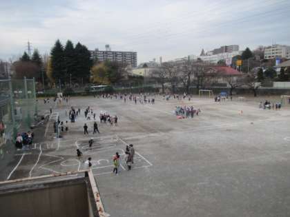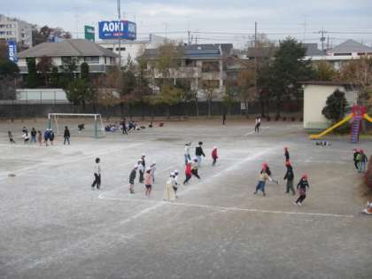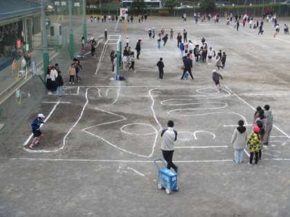 給食時間中に校庭に出てみたら既にライン等が準備されていました。