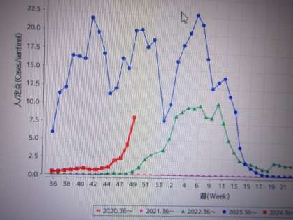 11月18日からの47週、25日からの48週、そして12月2日からの49週にかけて、カーブが急激に上昇しています。