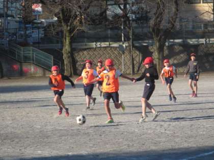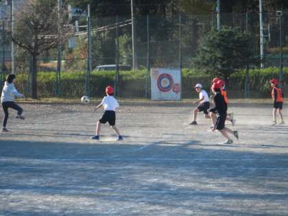 校庭でサッカーを楽しみました。