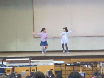 体育館の舞台の上で、度胸良くダンスを紹介してくれました。